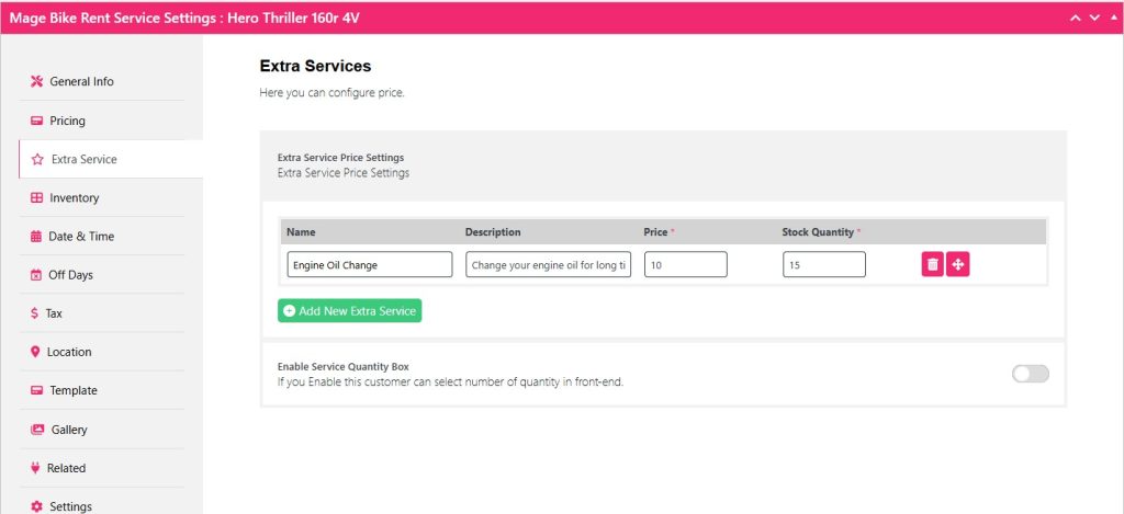 You can add more Extra Services by clicking the Add New Extra Service button.