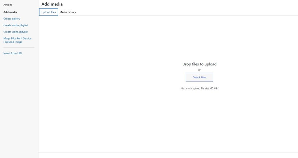 Click Upload and select existing image files from the Media Library or upload new image files.
