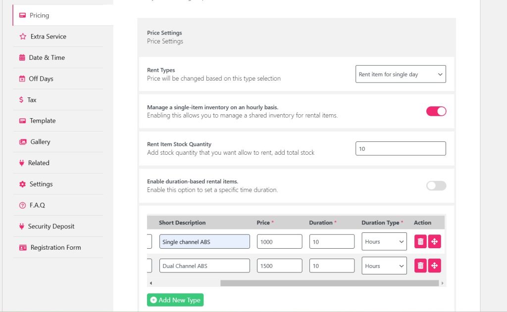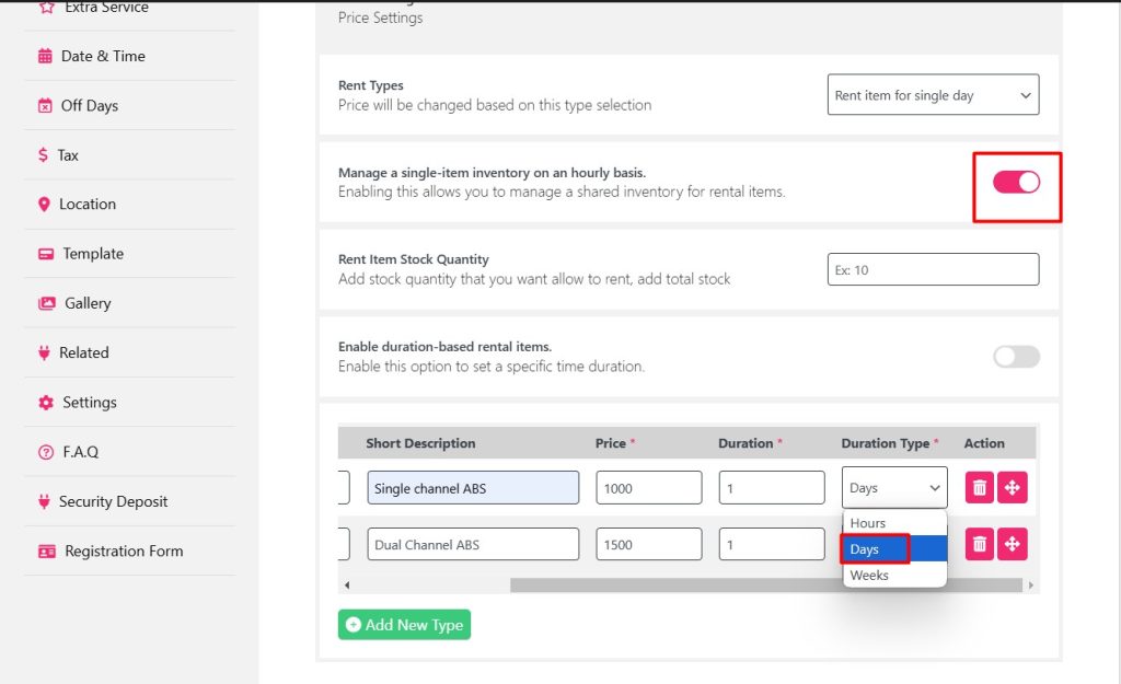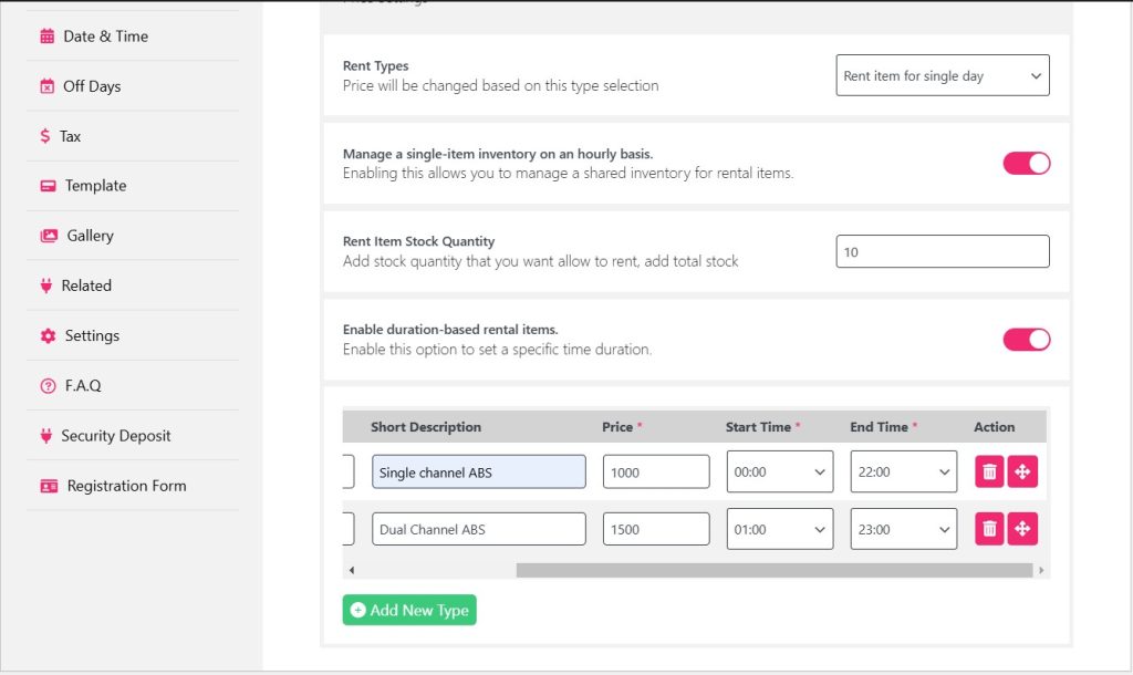 Also, you can add Total stock inventory for your day-wise booking from Rent Item Stock Quantity.