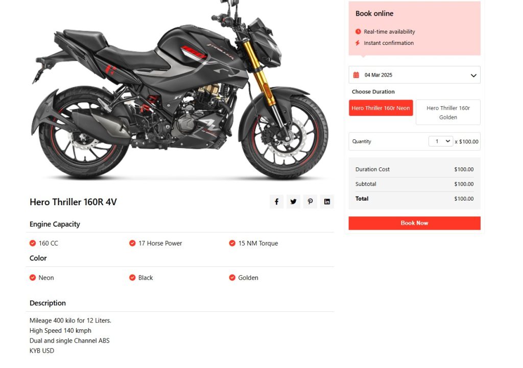Also, you can count hourly price per hour too, like 1-hour bike rental costs $100.
