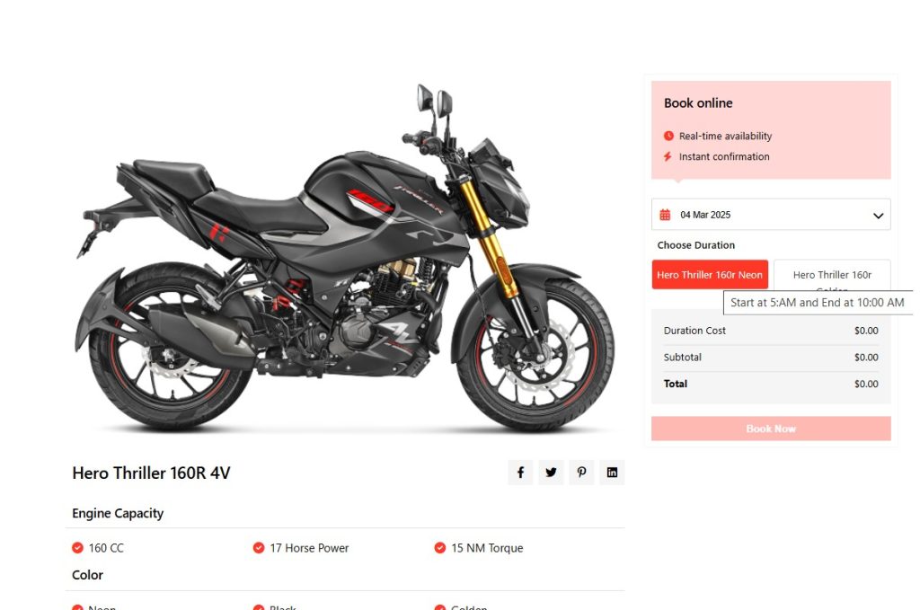 For example, you can rent a variant bike for 00:00 as a start time and 22:00 as an end time.
